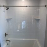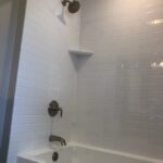 A black and white bathroom can create a stunning timeless aesthetic. IF you want both elegant and clean feeling, go black and white. This space was created using a combination of Daltiles oversized white subway and an oversized hexagon in color Black Poll and a smaller version from the mosaics matte black.